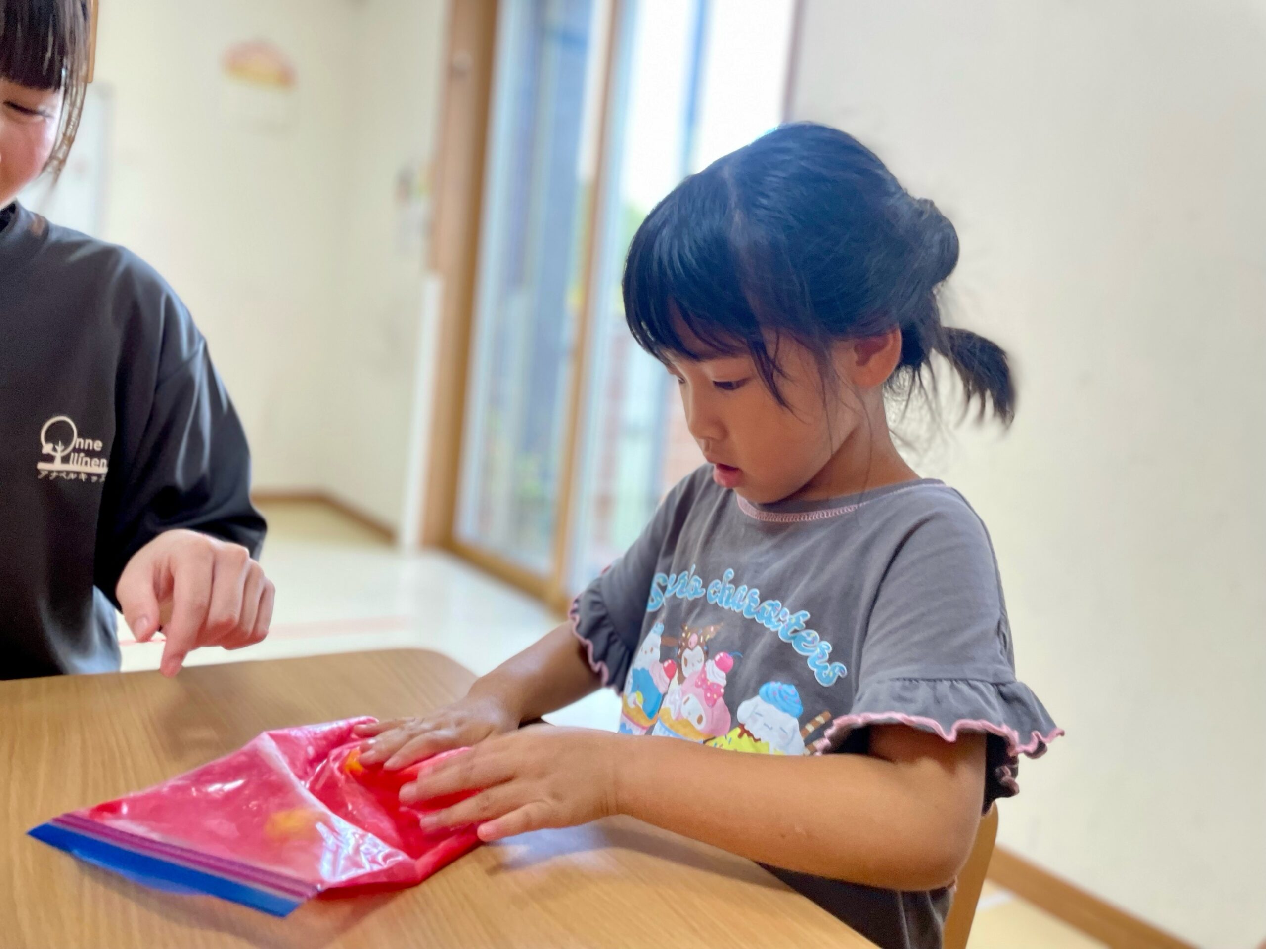 ❄️ わくわく実験 ― 氷が変わるスライムあそび 2025 9/05 Album September 5, 2025 Album ❄️冷たさから生まれる不思議 ― 氷スライムあそび 2025.09.05|🐞 小さな訪問者と一緒に ― カレンダーづくりのひととき