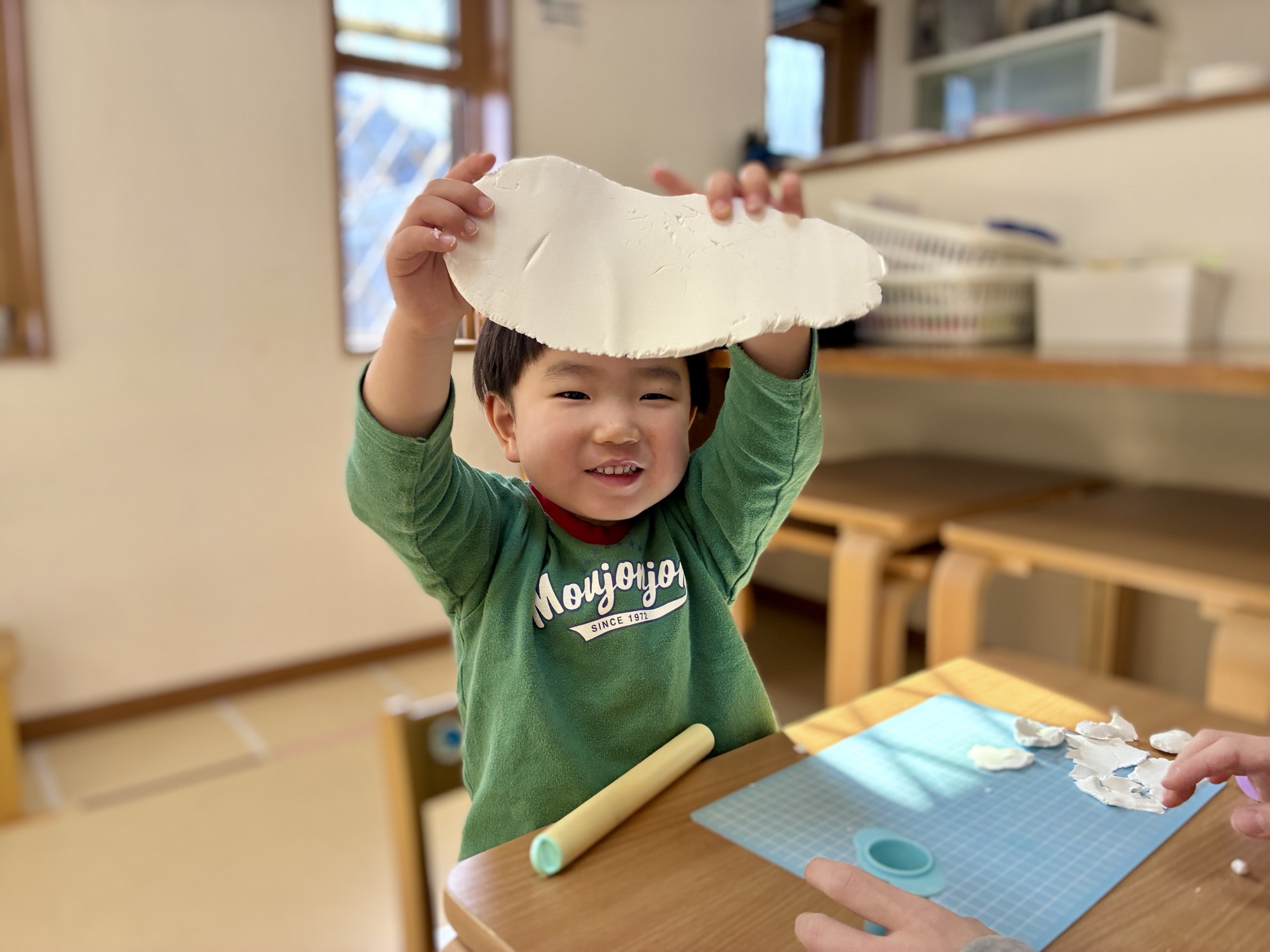 ひんやりとした粘土が、お友達の温かな手の中で少しずつ柔らかくなっていく不思議。