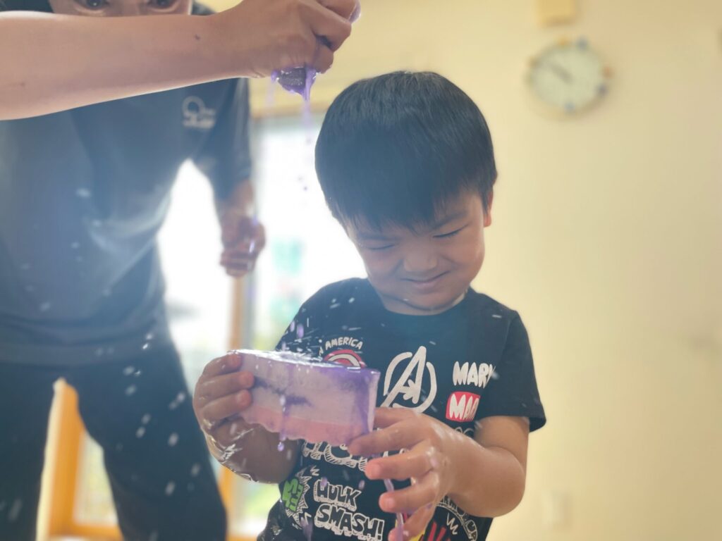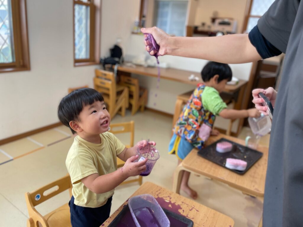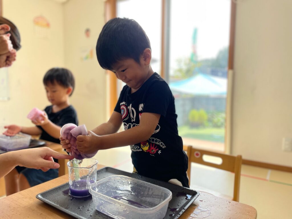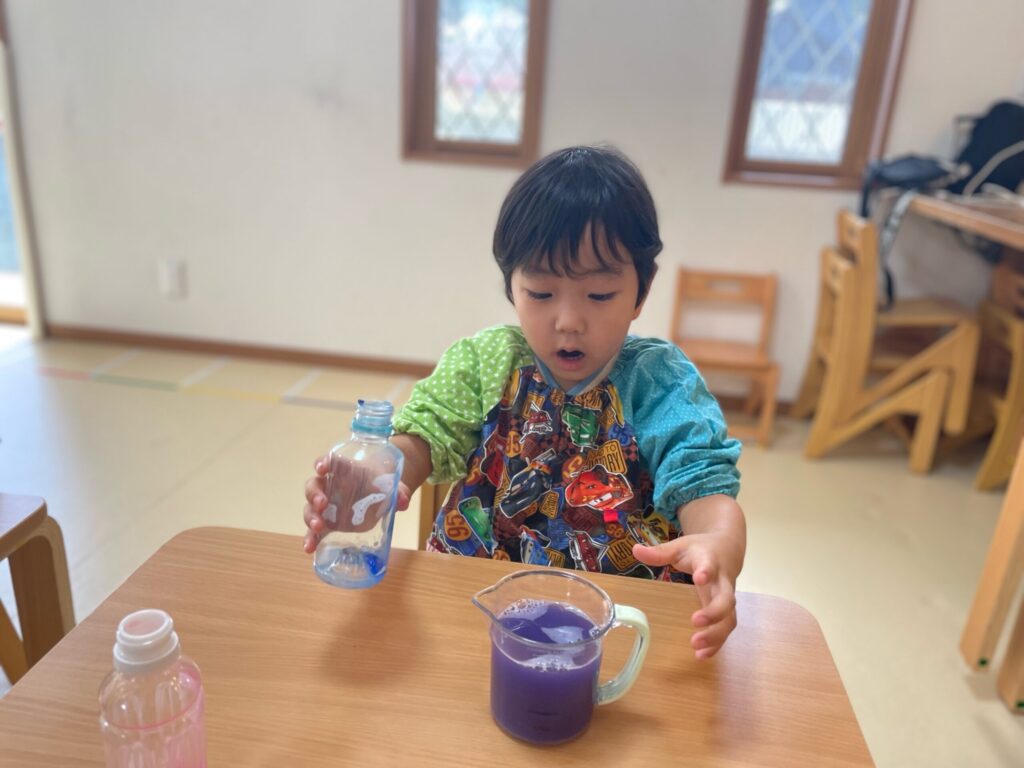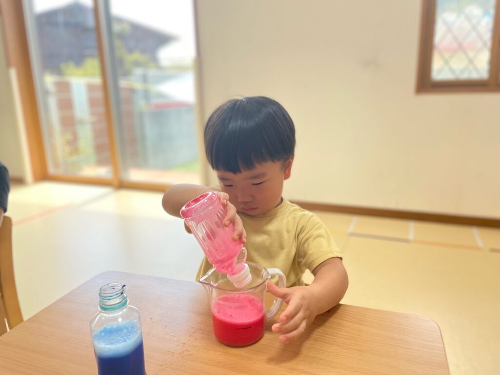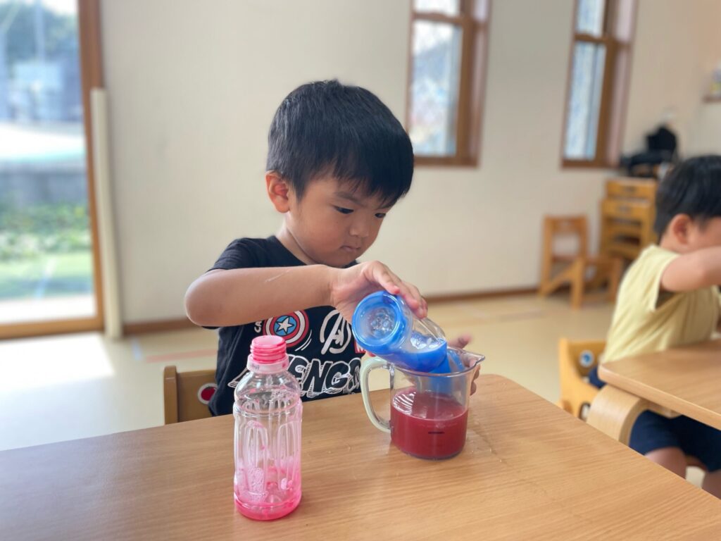 🌈 色が変わるふしぎ ― 笑顔いっぱいの色水あそび 2025 9/04 Album September 4, 2025 Album 🎨 手のひらで広がるカラフルな世界 🌈色が重なって生まれる世界 ― 色水あそび
