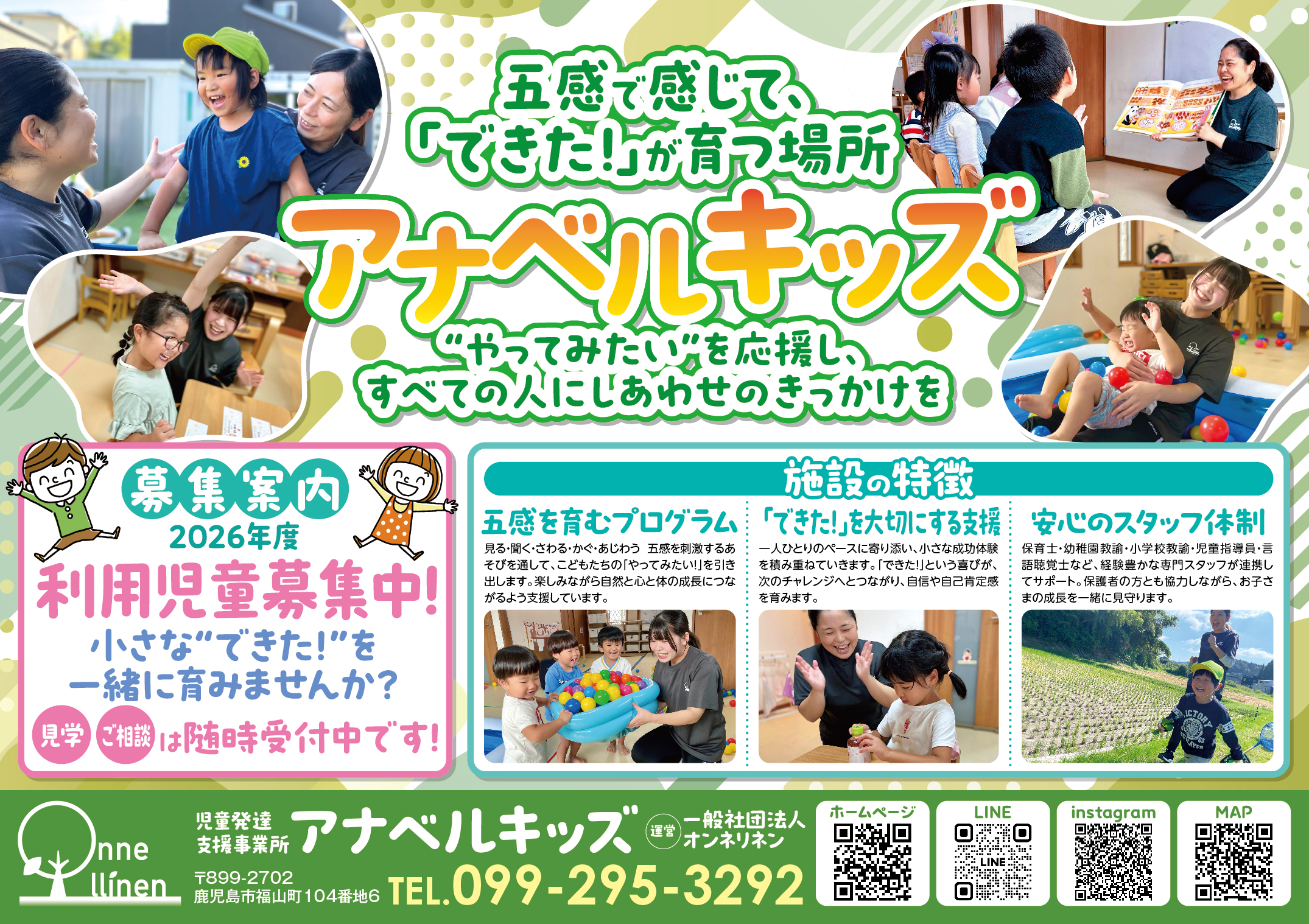 活動写真も季節の雰囲気に合わせて差し替え、よりアナベルキッズの雰囲気を感じていただける一枚に仕上げました🌷