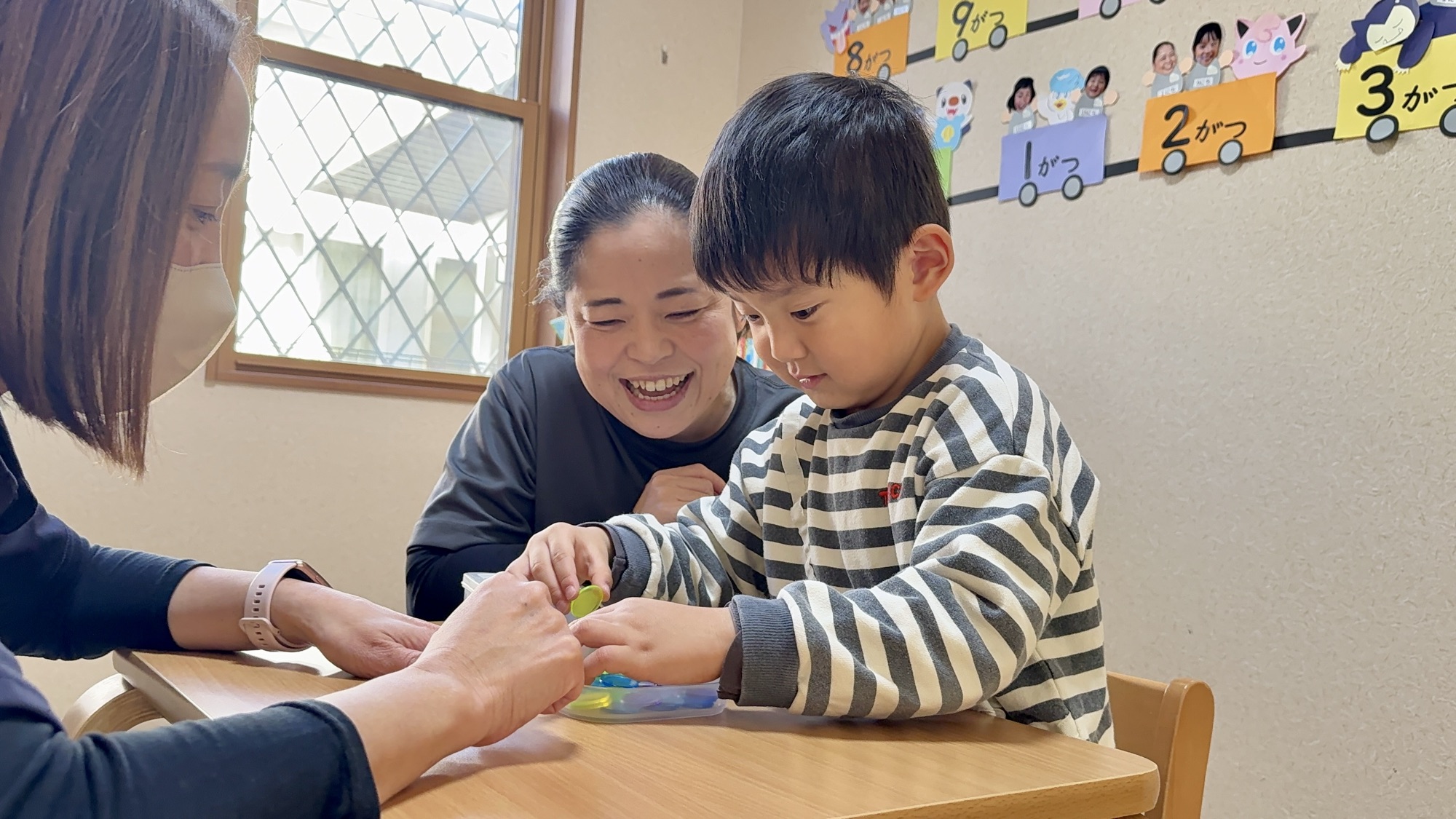 分からなくなったときには、「ここから一緒にやってみようか」と声をかけ、安心して続けられるよう関わっています。