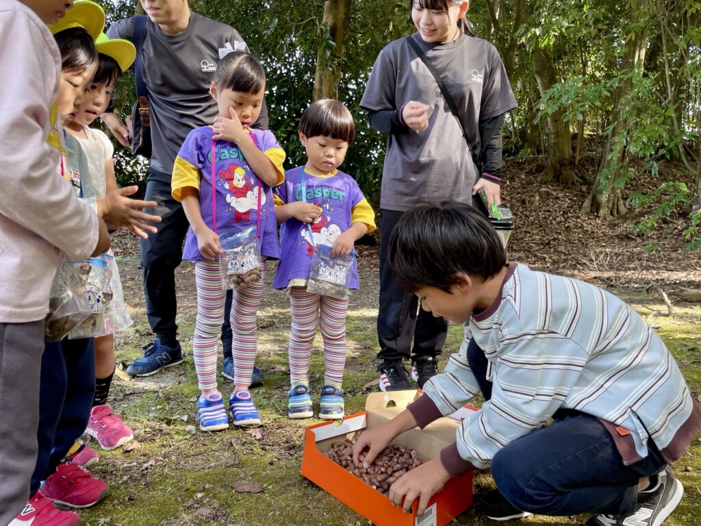 秋の陽ざしがぽかぽかと心地よい日、こどもたちは公園へどんぐり拾いに出かけました。 「ここにあったよー!」と見つけたどんぐりを見せ合いながら、形や色の違いを楽しむこどもたちの表情は、とってもいきいき そんな中、偶然公園に来ていた小学生のお兄... -