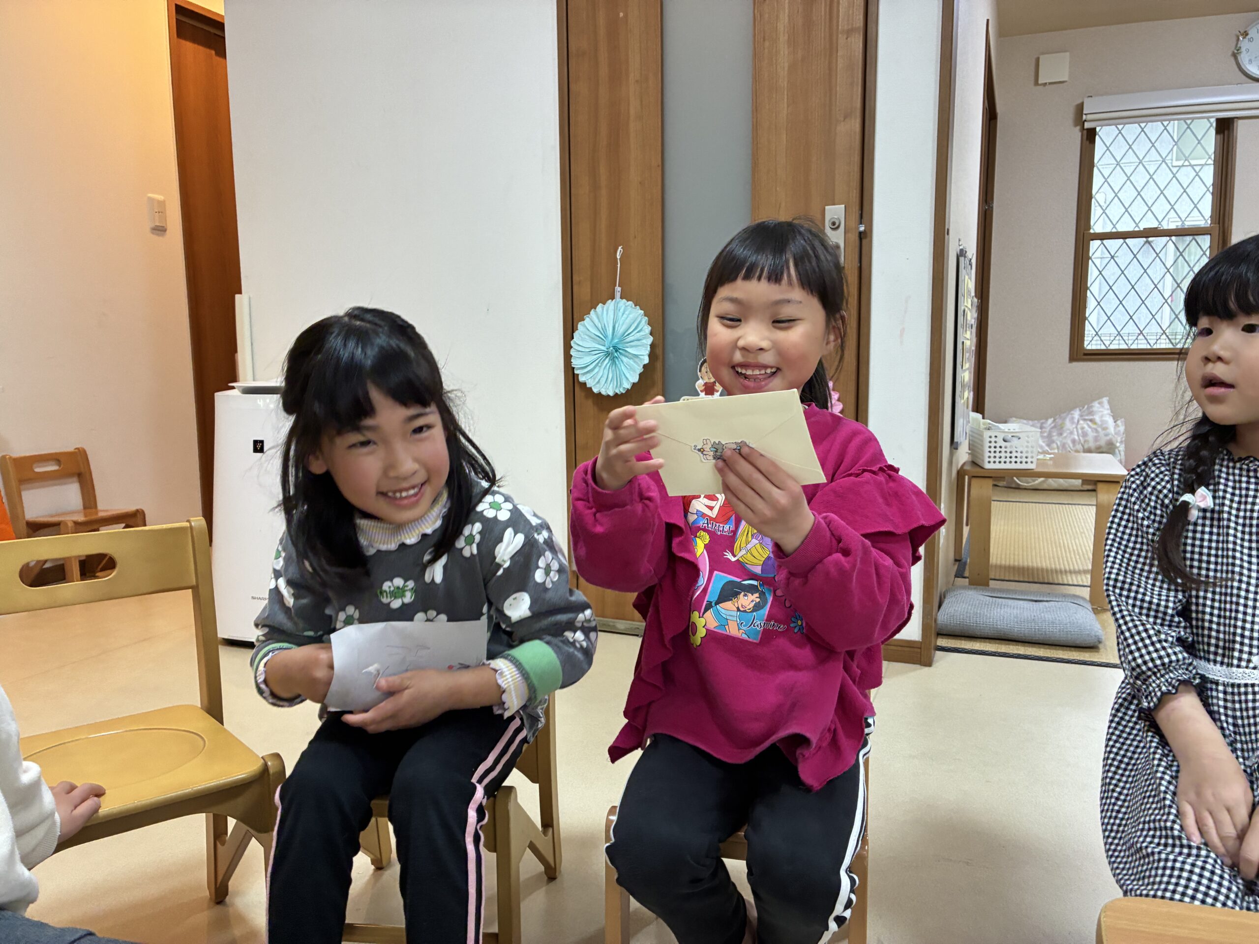 「読んでもいい?」と尋ねると、恥ずかしくて顔を隠してしまう姿もありましたが、その温かな内容に、受け取ったお友達もスタッフも、みんなの心がジーンと熱くなりました。