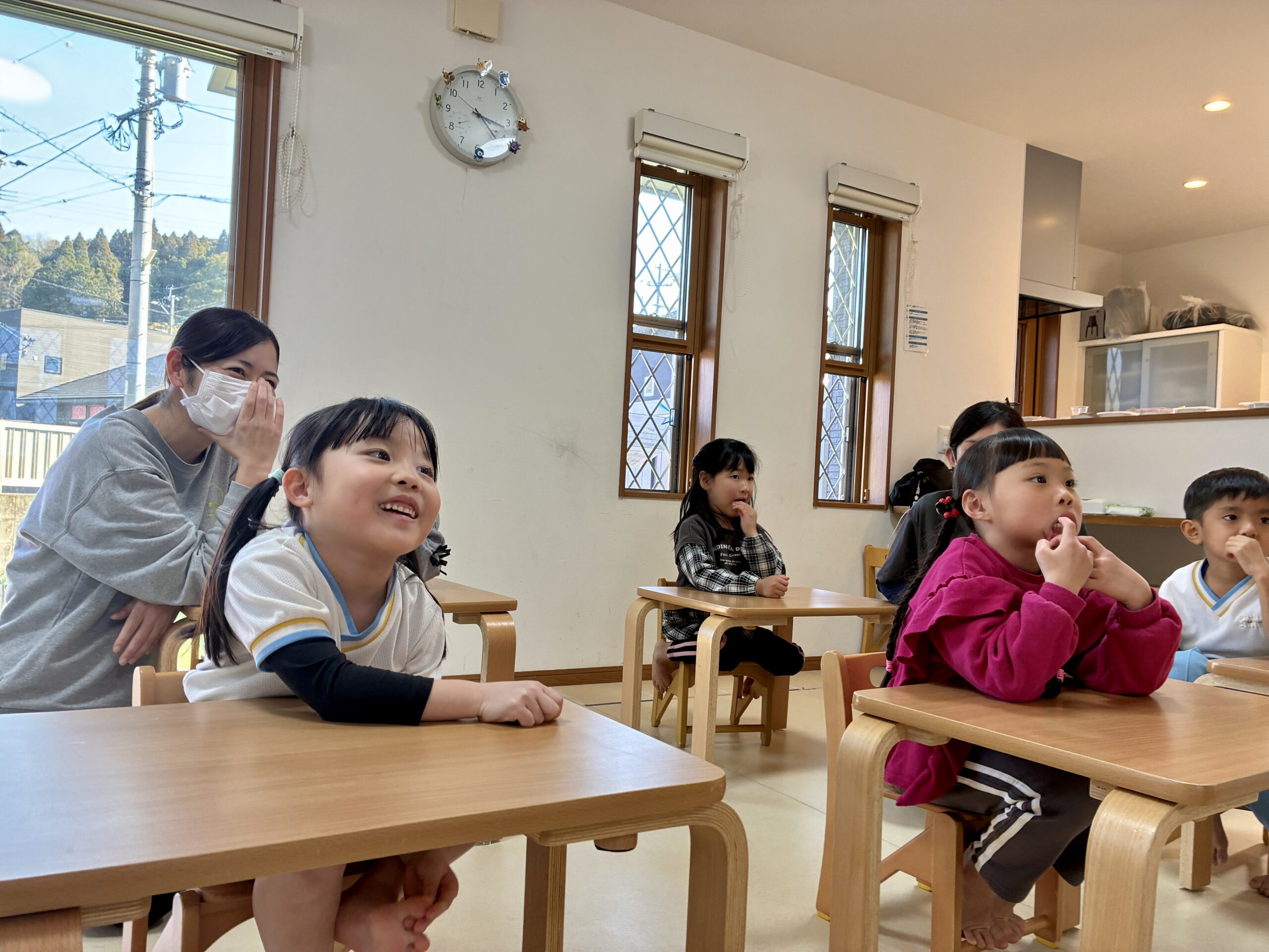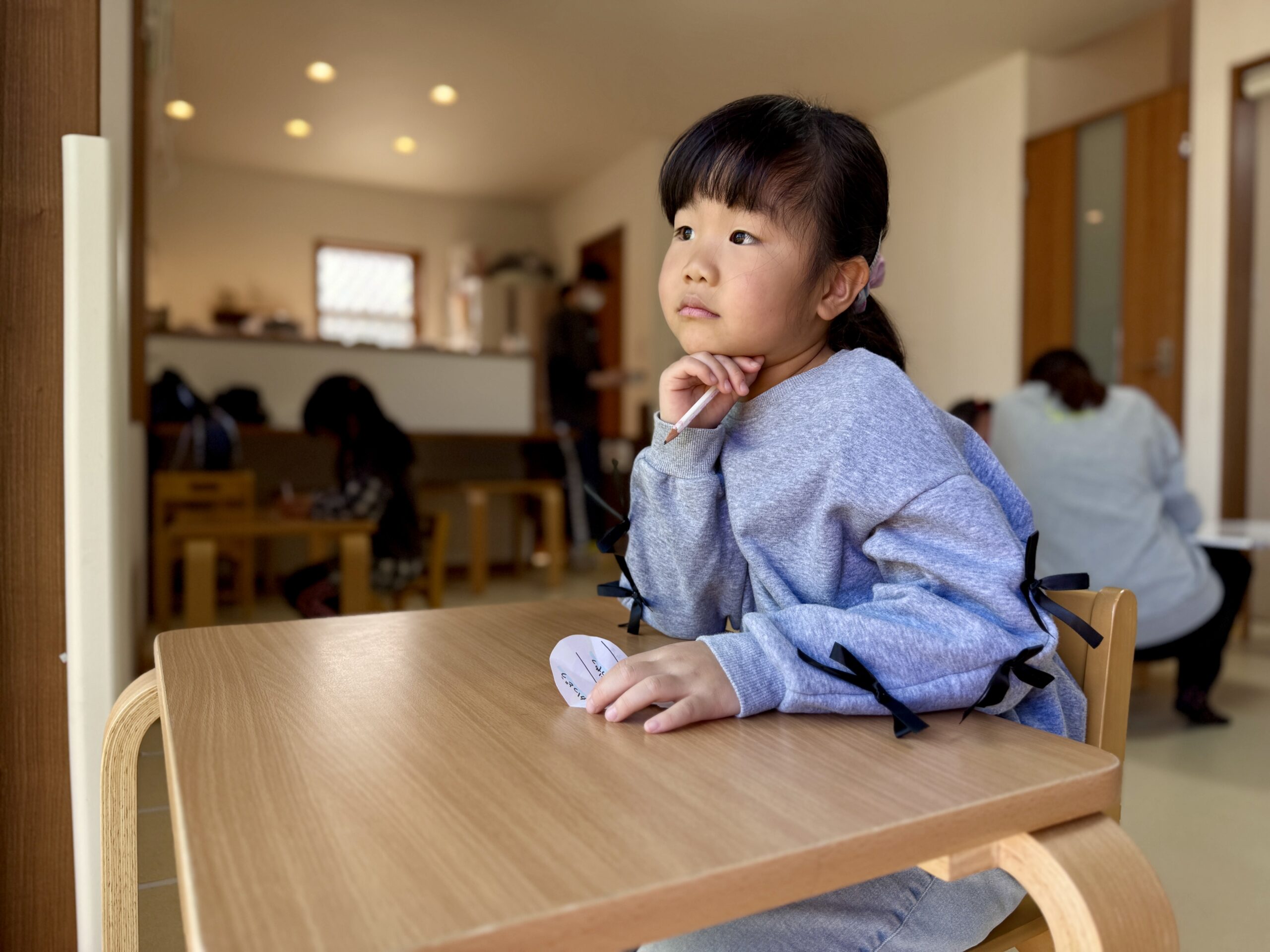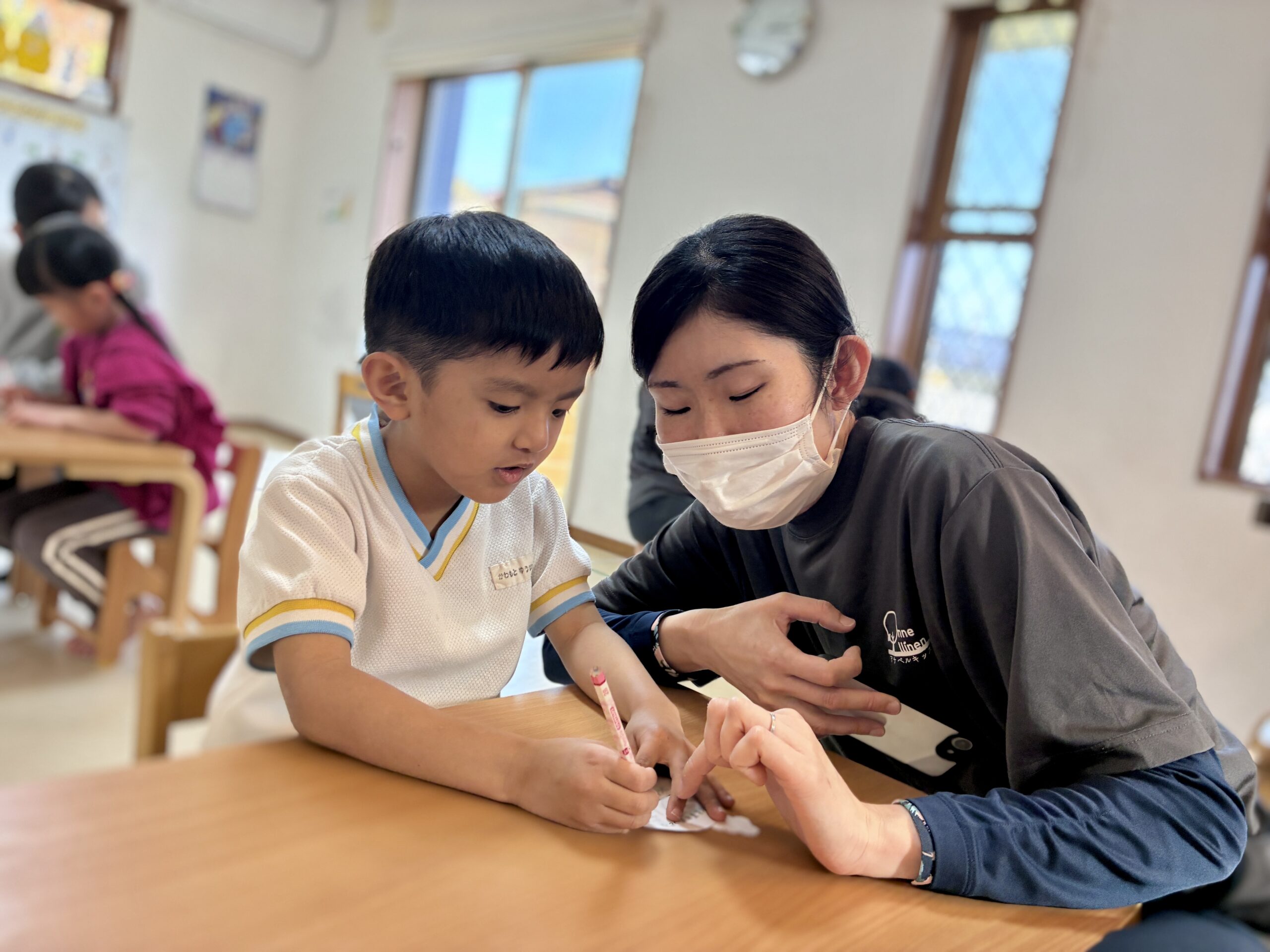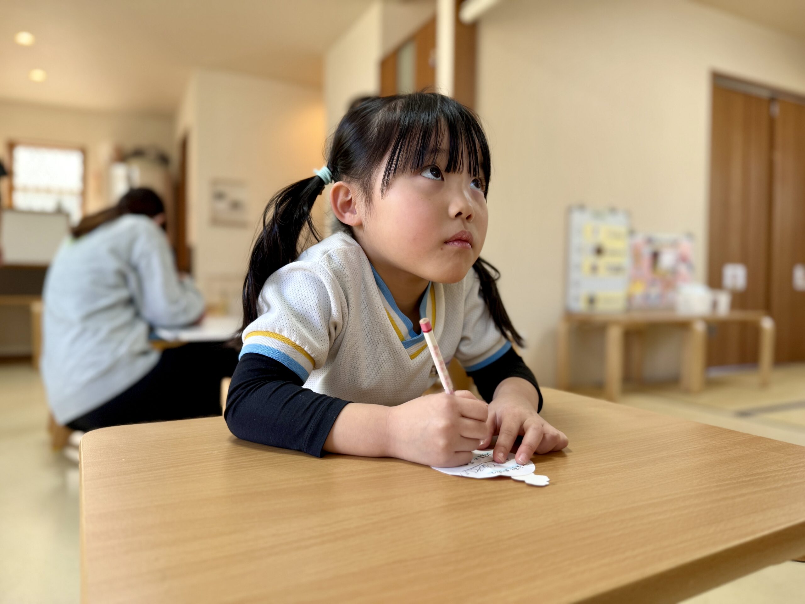 鉛筆を動かす年長さんの背中を見守りながら、私たちスタッフも新しい季節への勇気をもらったような気がします。